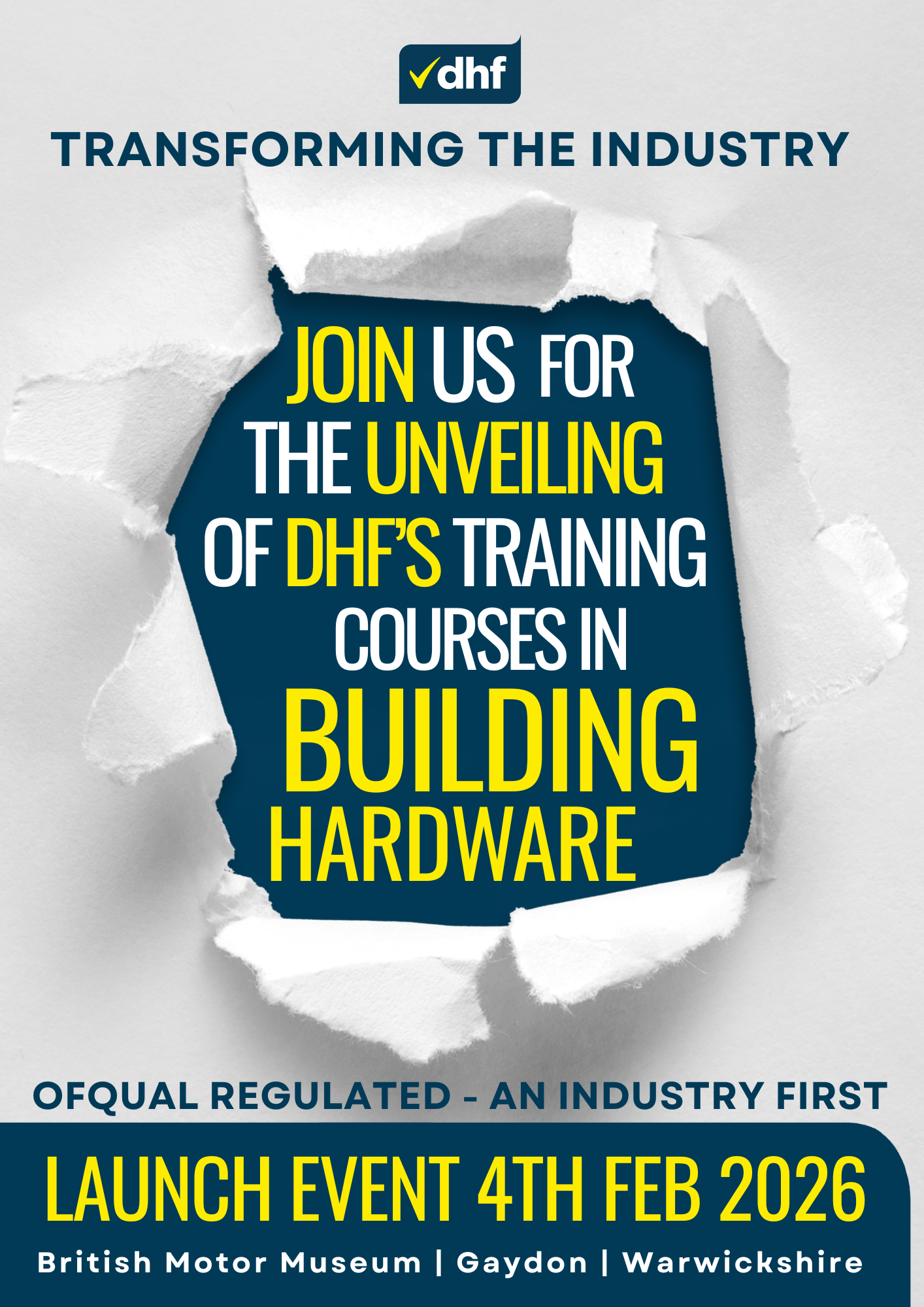 This not-to-be-missed launch event is exclusively for DHF members and VIPs, with priority for members of the Building Hardware Group and manufacturers' of the Timber and Metal Doorset Groups. Look for your invitation arriving in your inbox and respond promptly to secure your place.